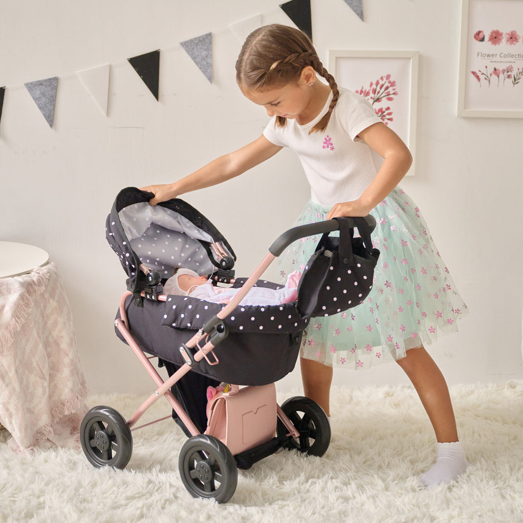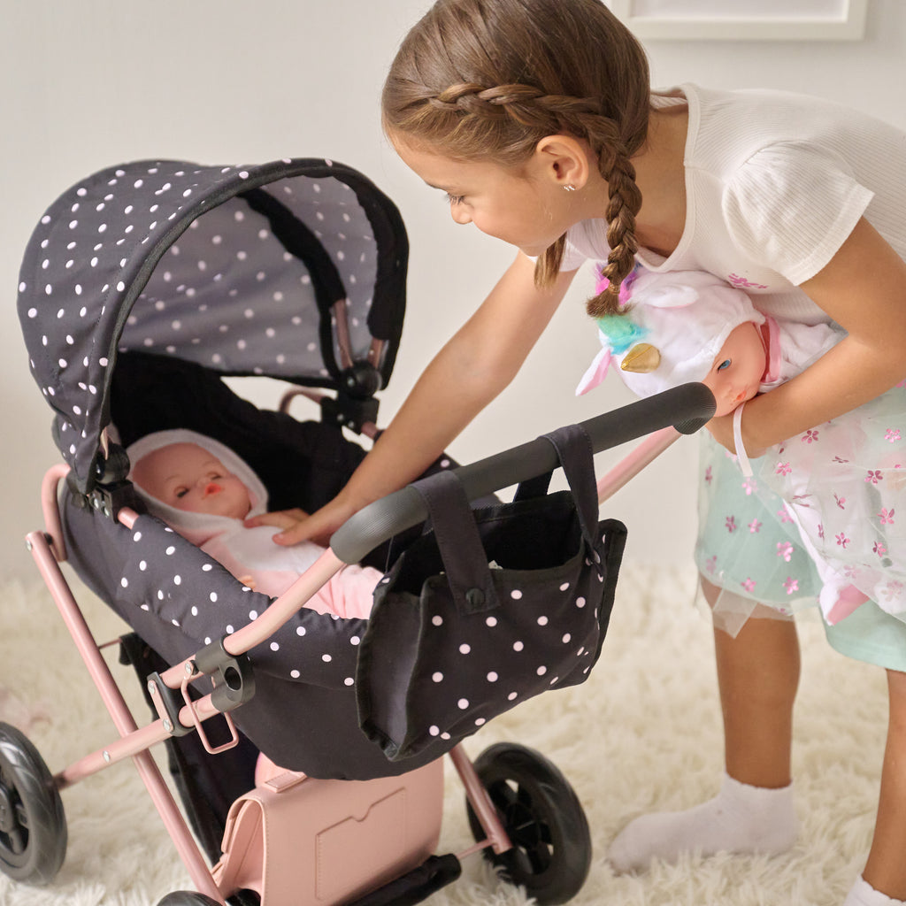It is easy to store after playtime and travels well to parks, playdates, or family trips. Soft, colourful fabric details and smooth-rolling wheels ensure comfort and ease for small hands to push indoors or outside. And with a secure safety lock, the stroller stays open while in use, offering peace of mind to parents. Its durability and realistic look allow children to feel capable and confident as they explore the world of caring for others. This baby doll stroller fits dolls from 15 to 18 inches and blends functionality with purposeful design. It creates a personal space for pretend routines, active learning, and thoughtful, hands-on fun that helps kids grow in the most meaningful ways.