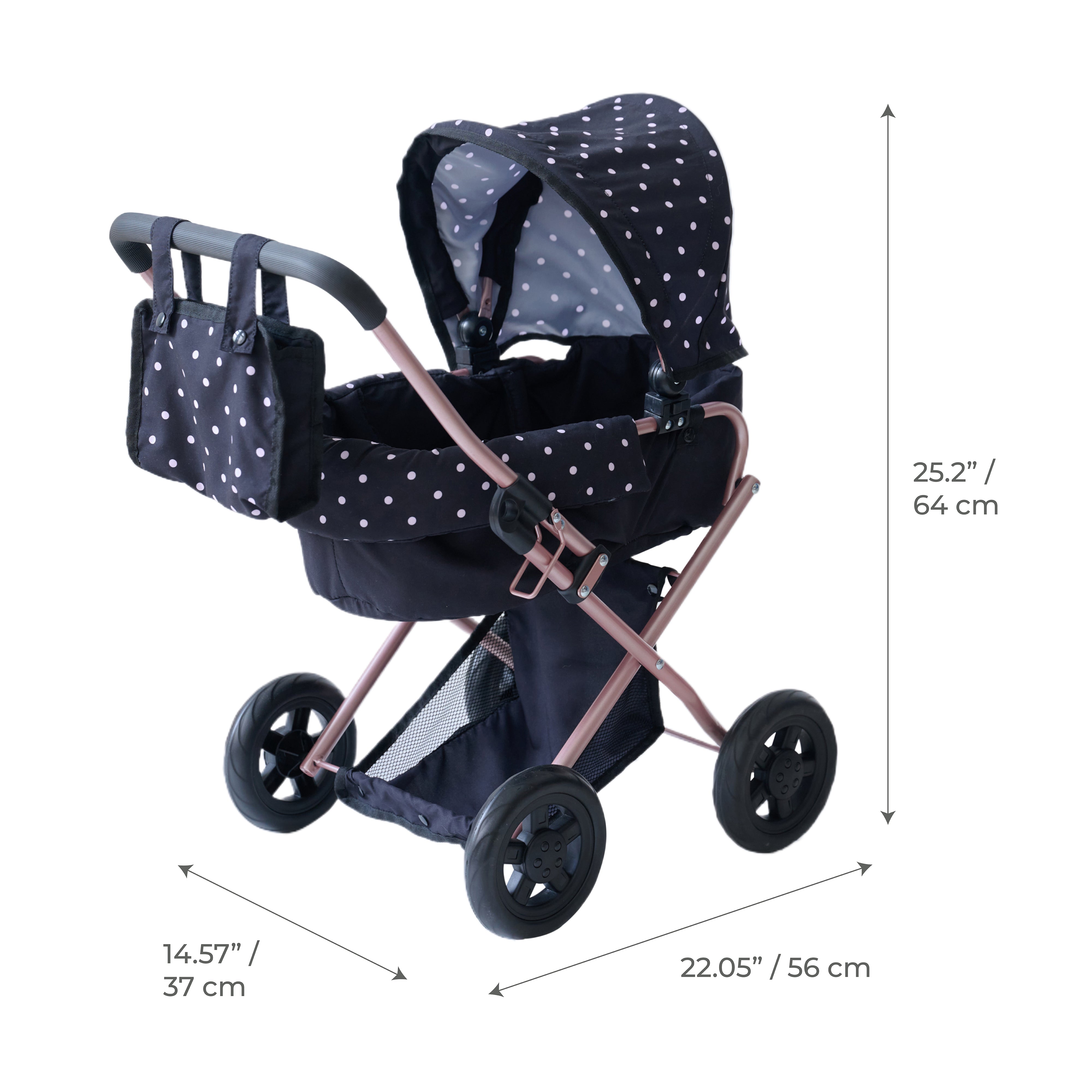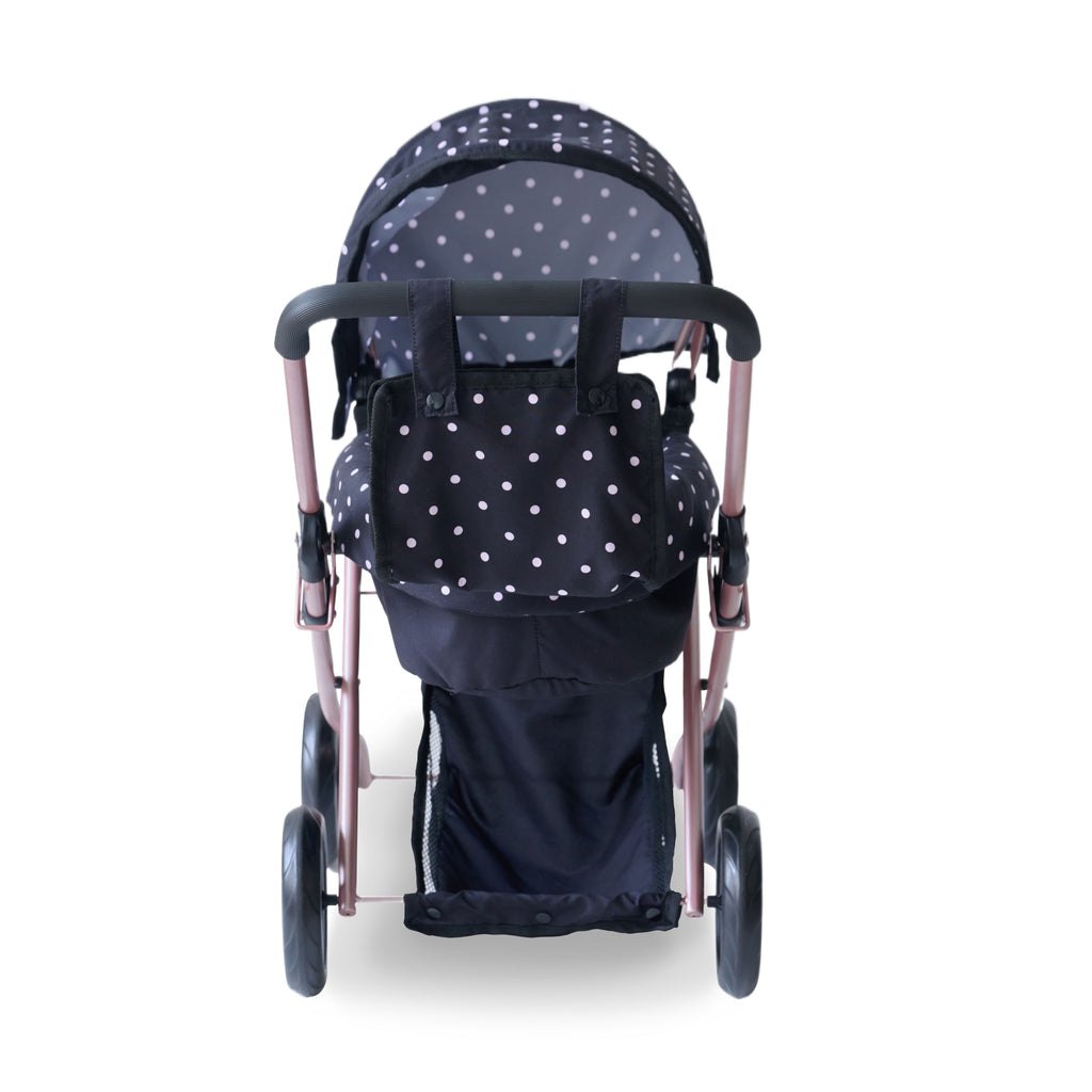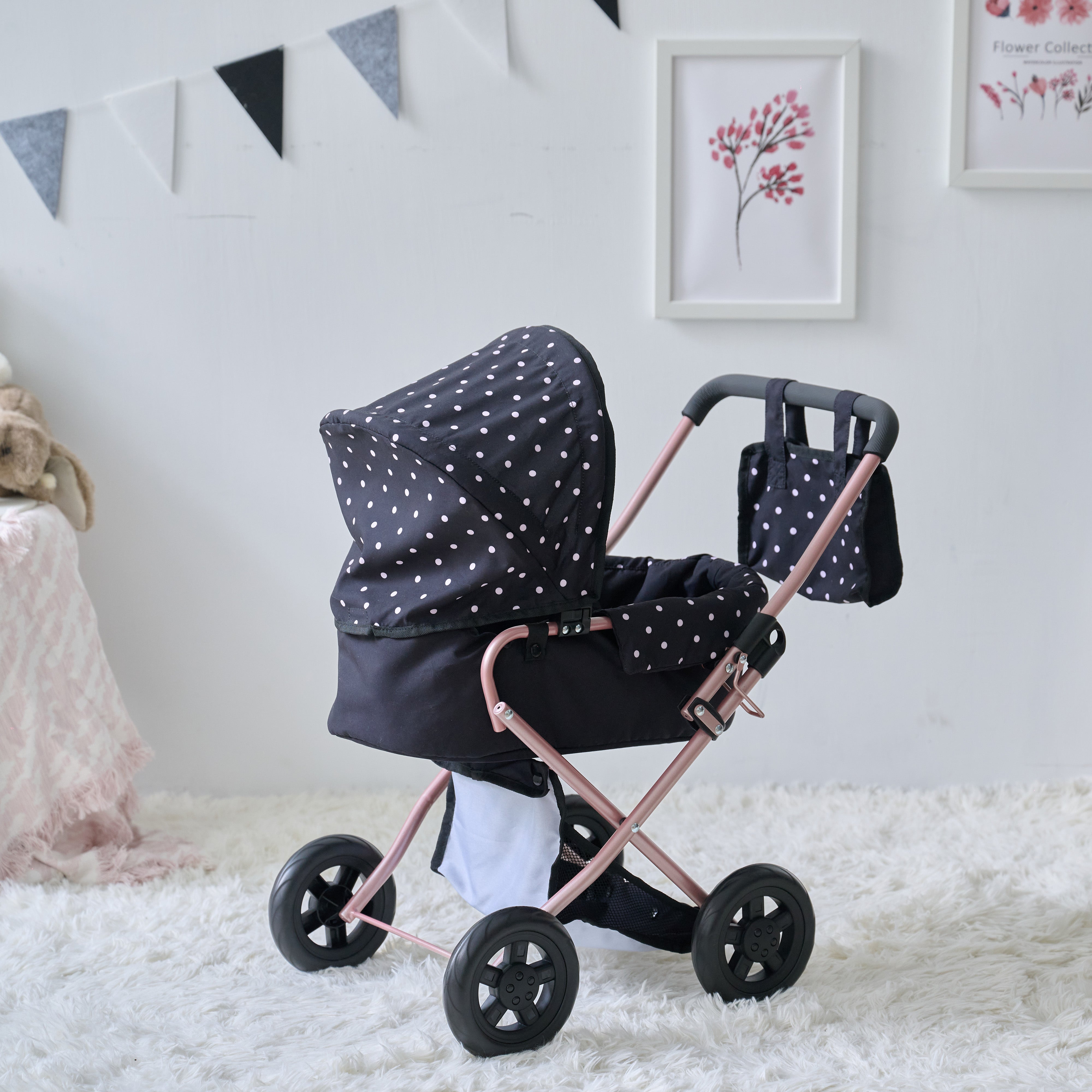 Teamson Kids 2-in-1 Classic Doll Stroller in Black with Removable Bassinet, Adjustable Canopy, Storage Basket & Bag, Encourages Nurturing & Creativity