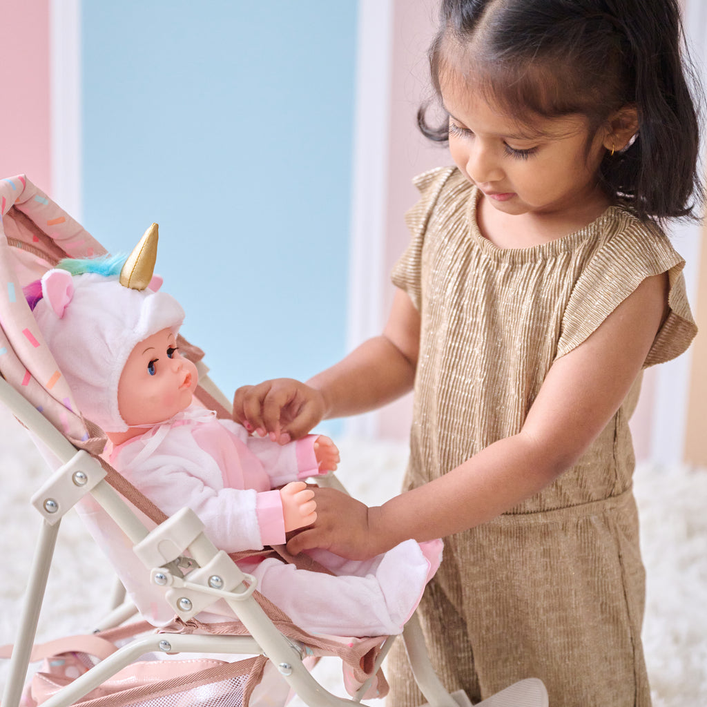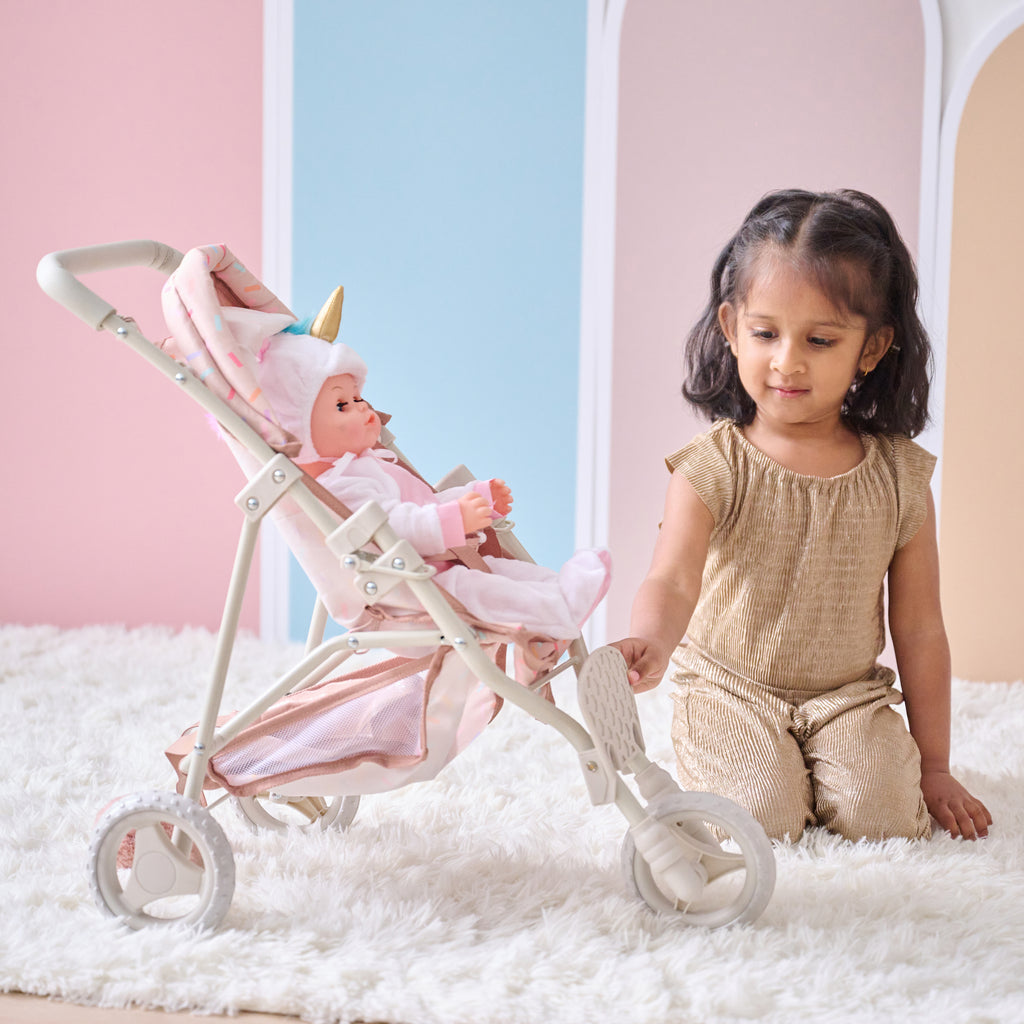 From the retractable canopy to the soft rubber handle, every detail is built to give kids a realistic and rewarding pretend parenting experience. As children fasten their baby dolls using the secure three-point safety belt, adjust the canopy for sunny days, and head out for a stroll, they’re not just playing but they’re developing empathy, responsibility, and fine motor skills in a fun, hands-on way. It’s the kind of interactive play that grows with them and supports early social-emotional learning.