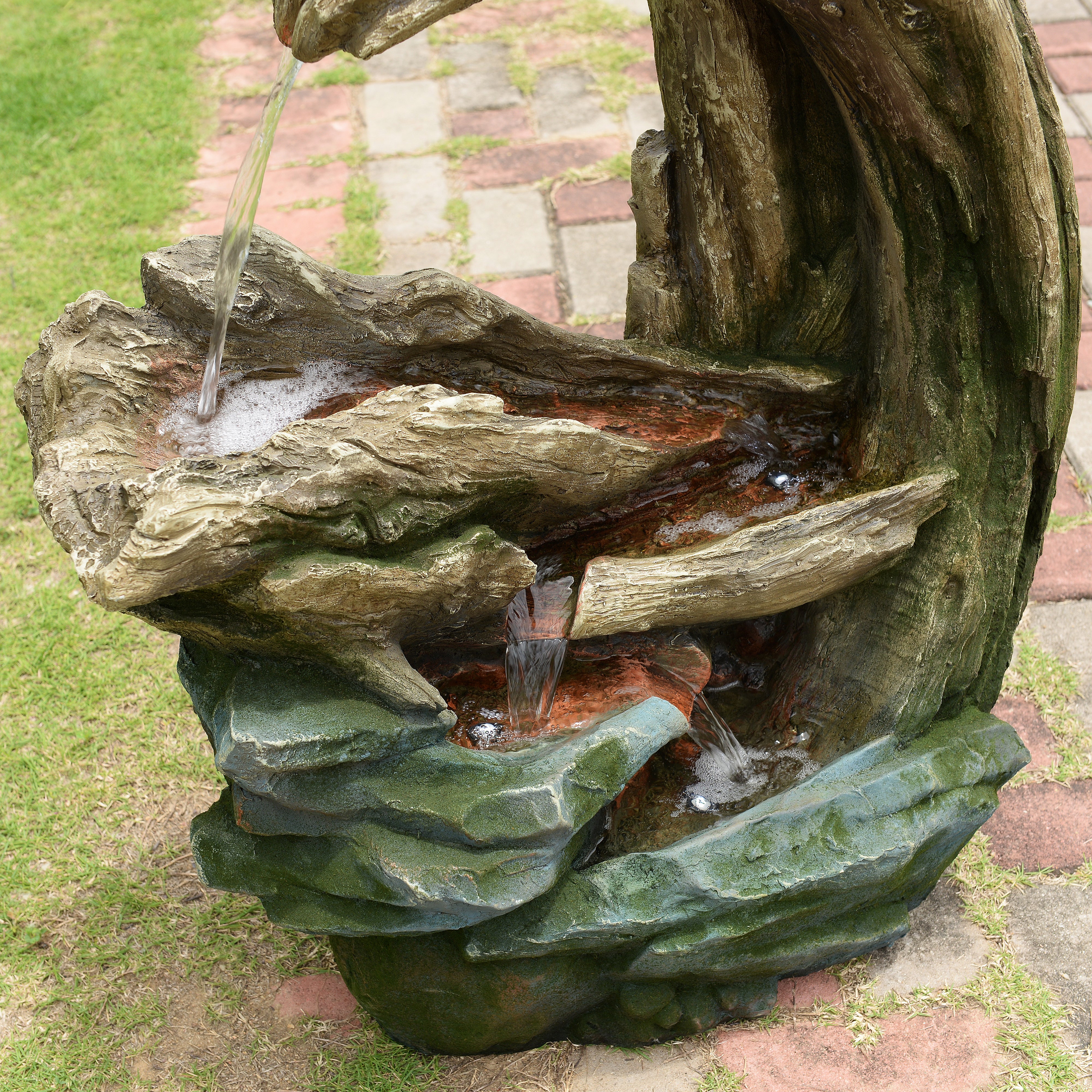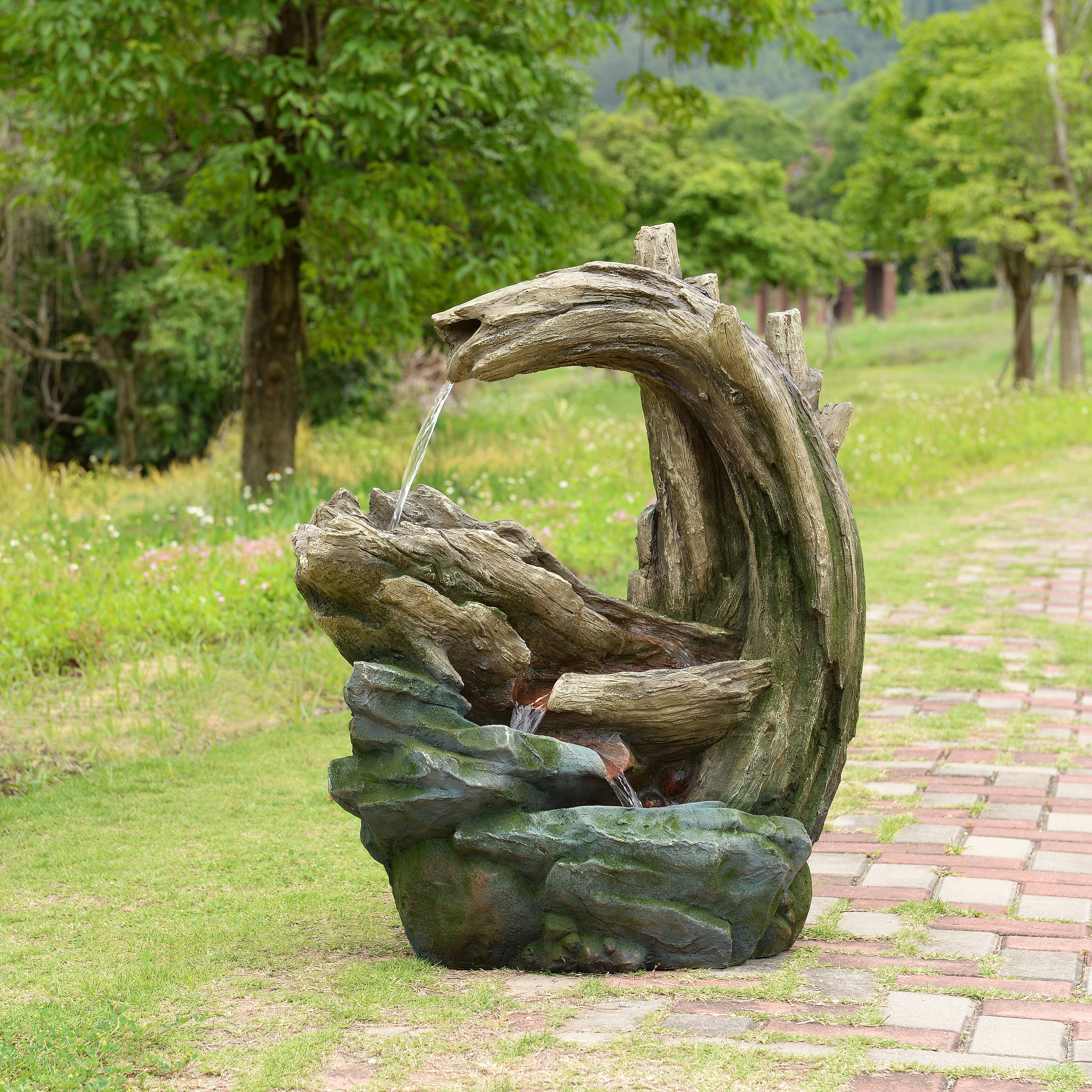 Designed to bring a sense of calm to outdoor spaces, the Teamson Home 82 cm tall Cascading Faux Rock and Wood Fountain combines natural styling with soothing sound. Inspired by woodland streams, this fountain introduces movement, texture and ambience to gardens, patios and balconies. Water flows smoothly across multiple curved tiers, creating a steady cascade that delivers a relaxing background sound.
