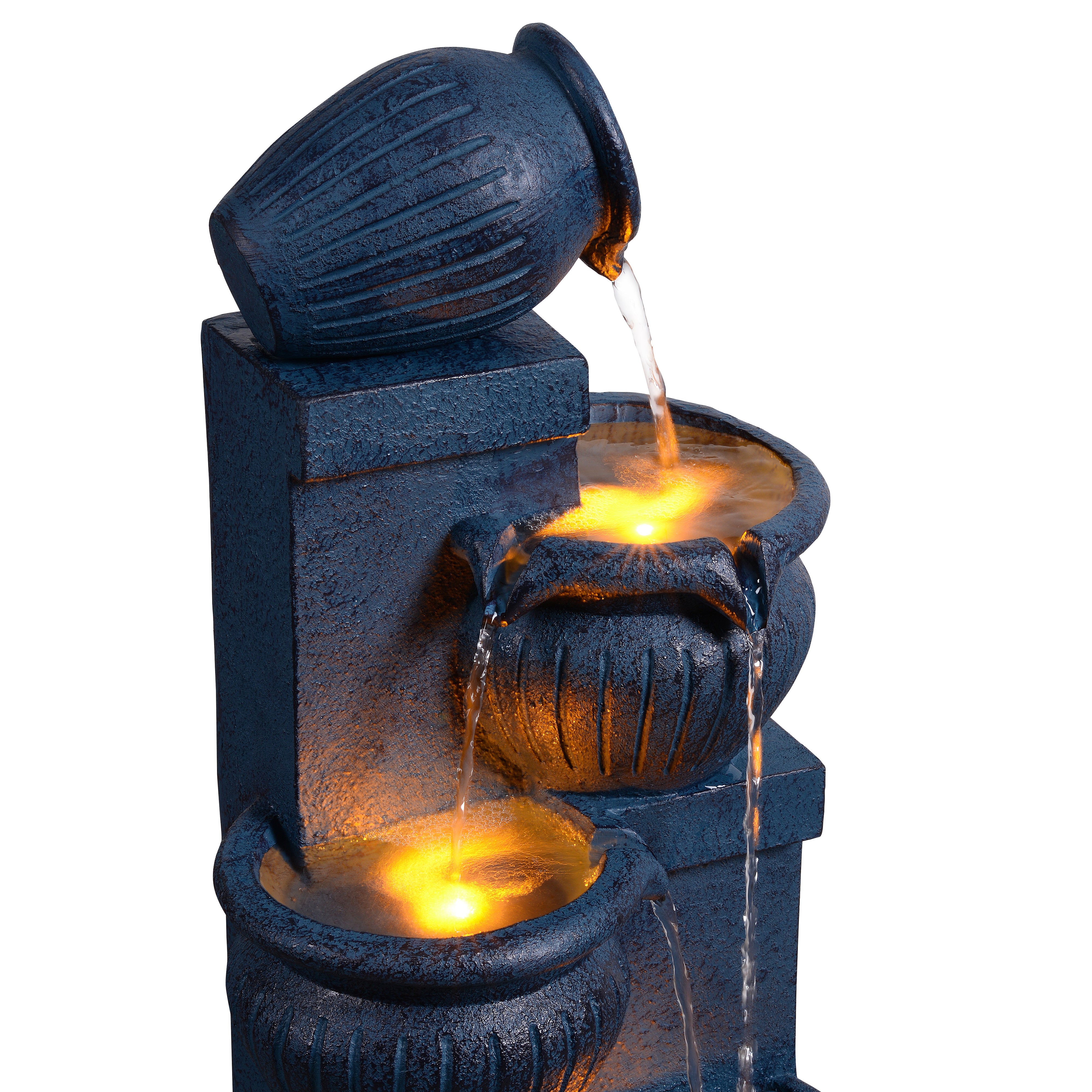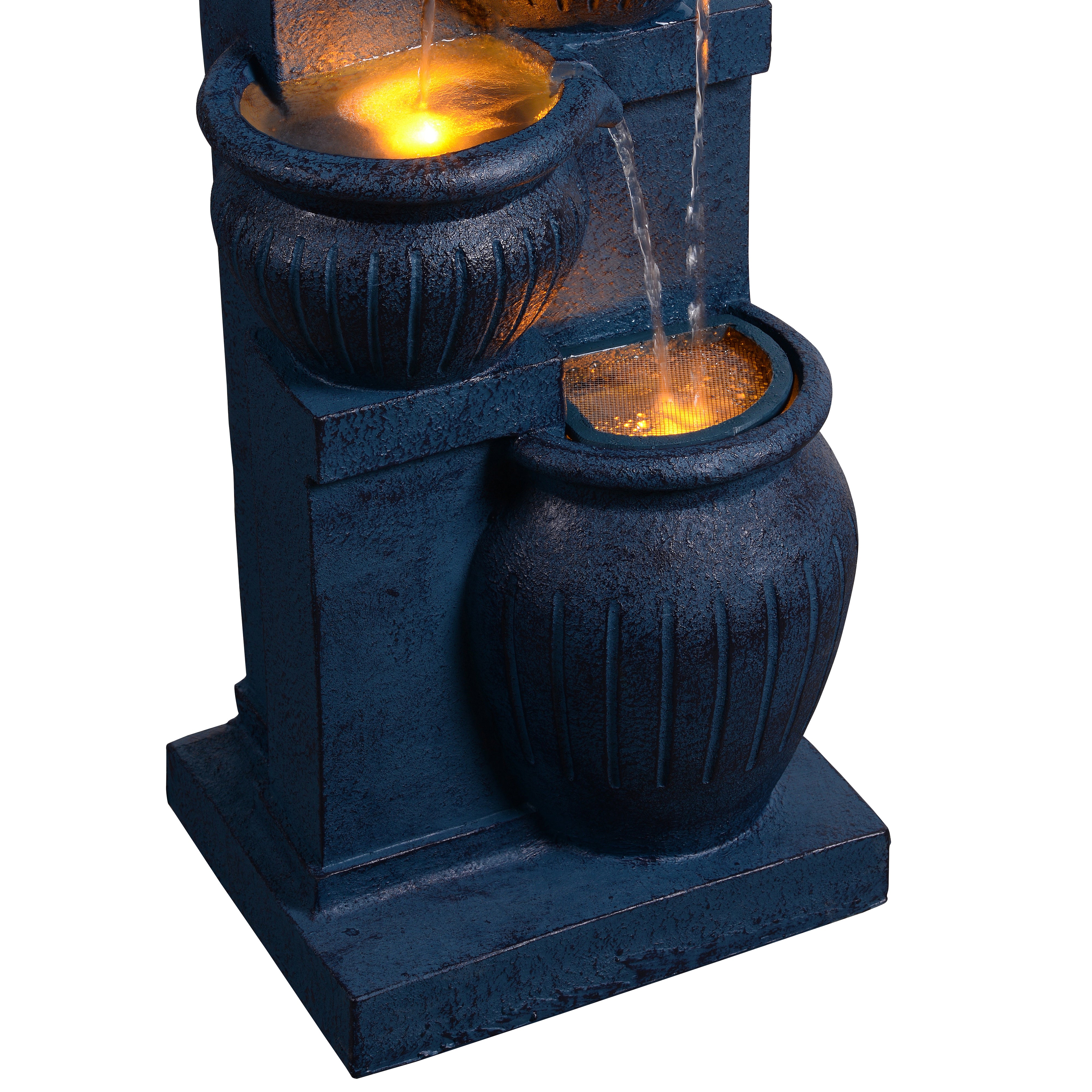 Evening LED Highlighting: Subtle LED lights illuminate the water as it flows, extending enjoyment into the evening with a soft, inviting glow.