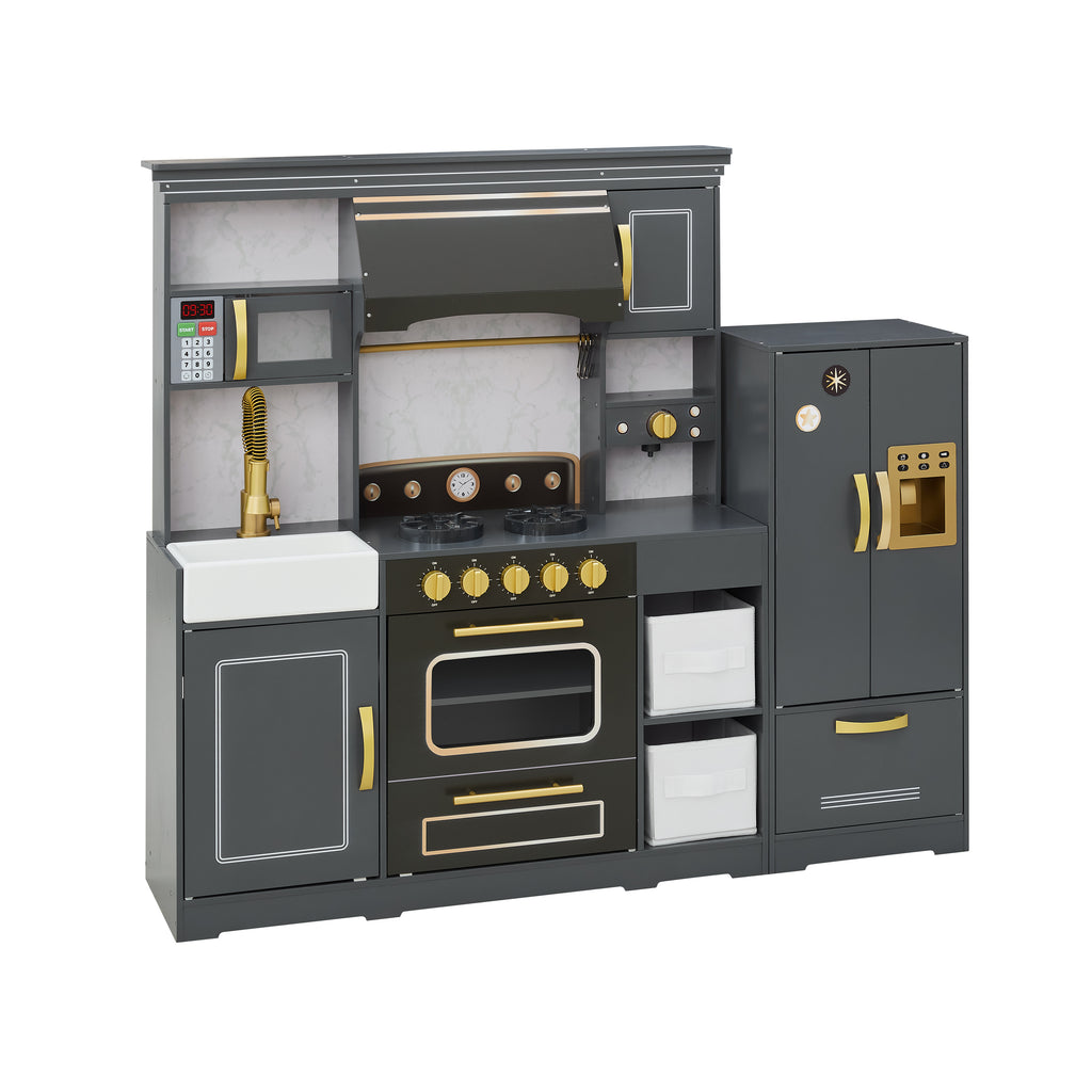 Does your little one dream of whipping up delicious meals? Fuel their culinary creativity with our fantastic selection of children's play kitchens! Choose from classic retro designs, sleek modern kitchens, or charming farmhouse styles to match your playroom decor. Realistic features include doors that open and close, turning knobs, and even working ice dispensers in some models. Most kitchens include sinks, ovens, refrigerators, and microwaves, letting their culinary creations take centre stage.