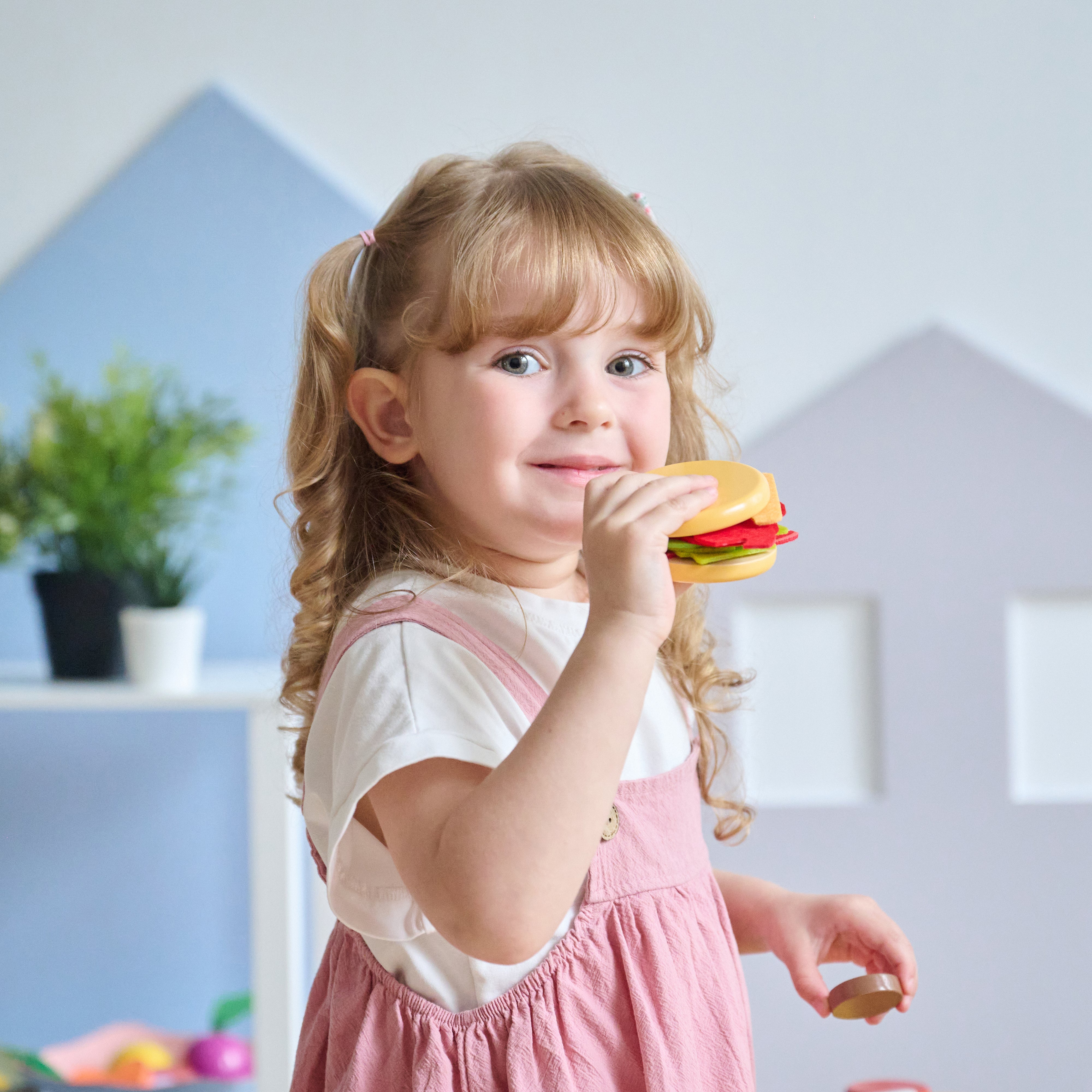 Alongside the two appliances are 27 food and prep accessories that add richness to pretend play: toast, bagels, butter, jam, cheese, egg, avocado, bacon, spinach, milk, a reusable travel tumbler and even a paper bag for takeaway play. Each piece is scaled for small hands and styled to look realistic, helping kids recognize everyday foods and build early language around meals and routines.