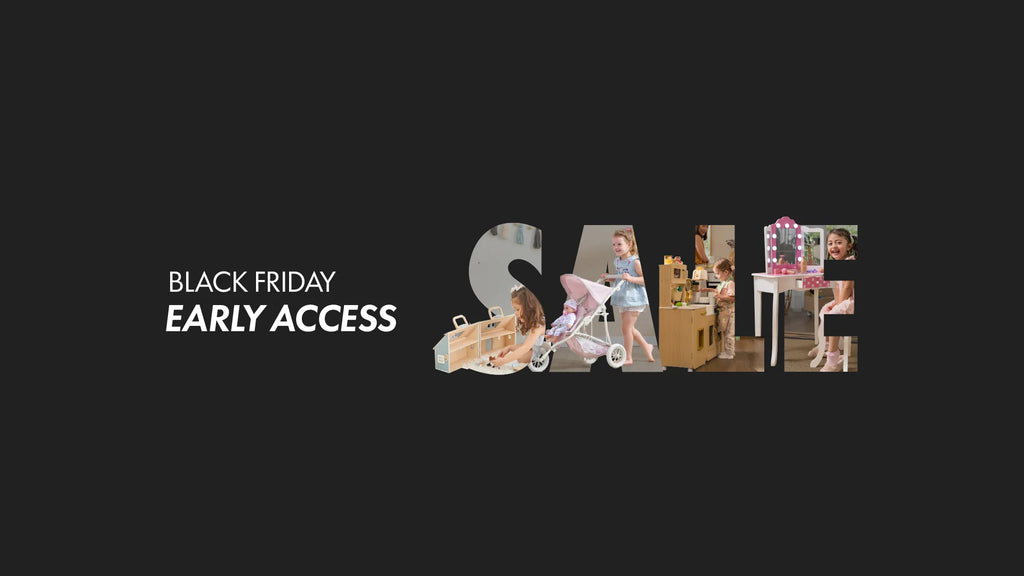 Discover huge Black Friday savings on kids’ toys, wooden play sets, dollhouses, play kitchens and more imaginative favourites.