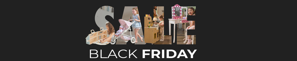 Discover huge Black Friday savings on kids’ toys, wooden play sets, dollhouses, play kitchens and more imaginative favourites.