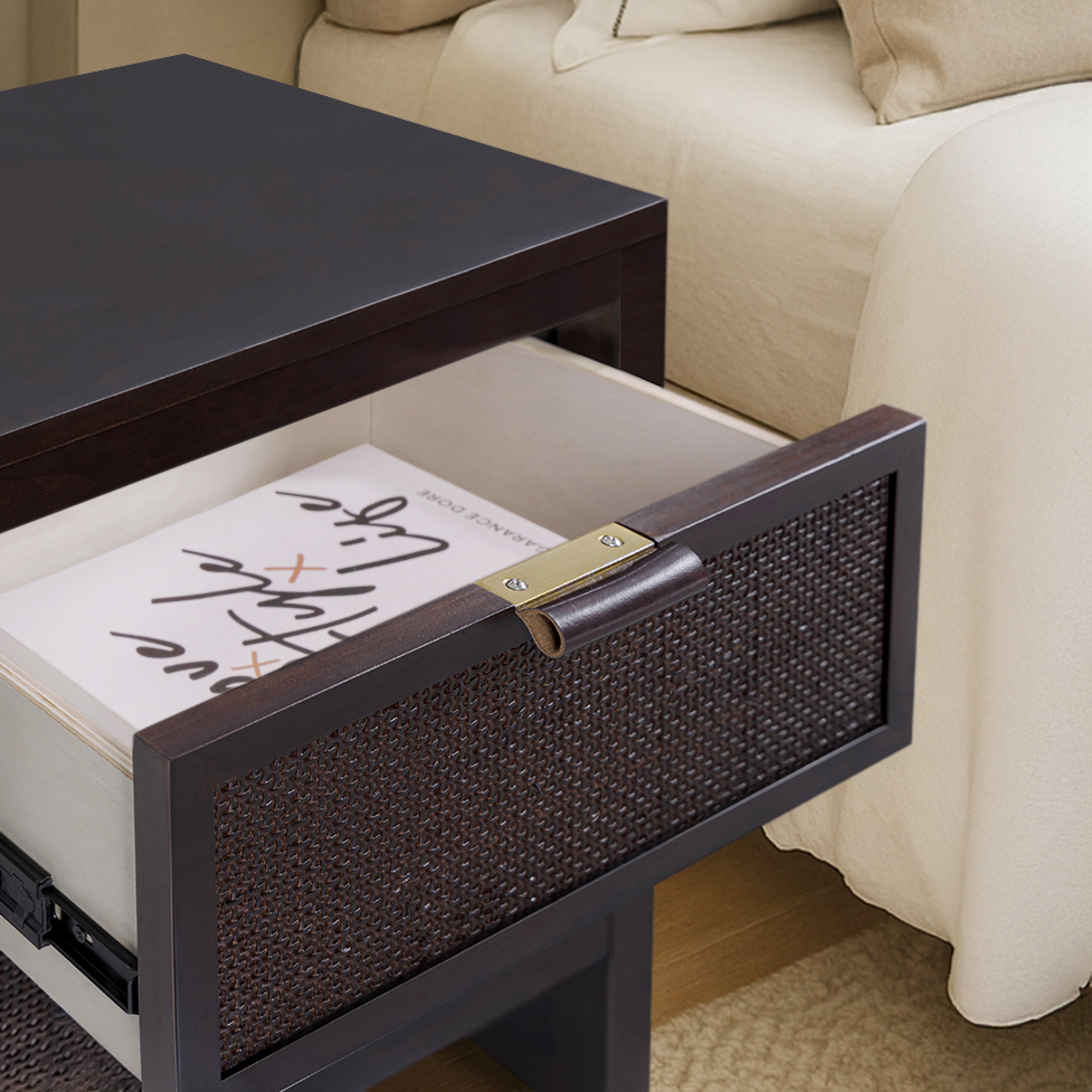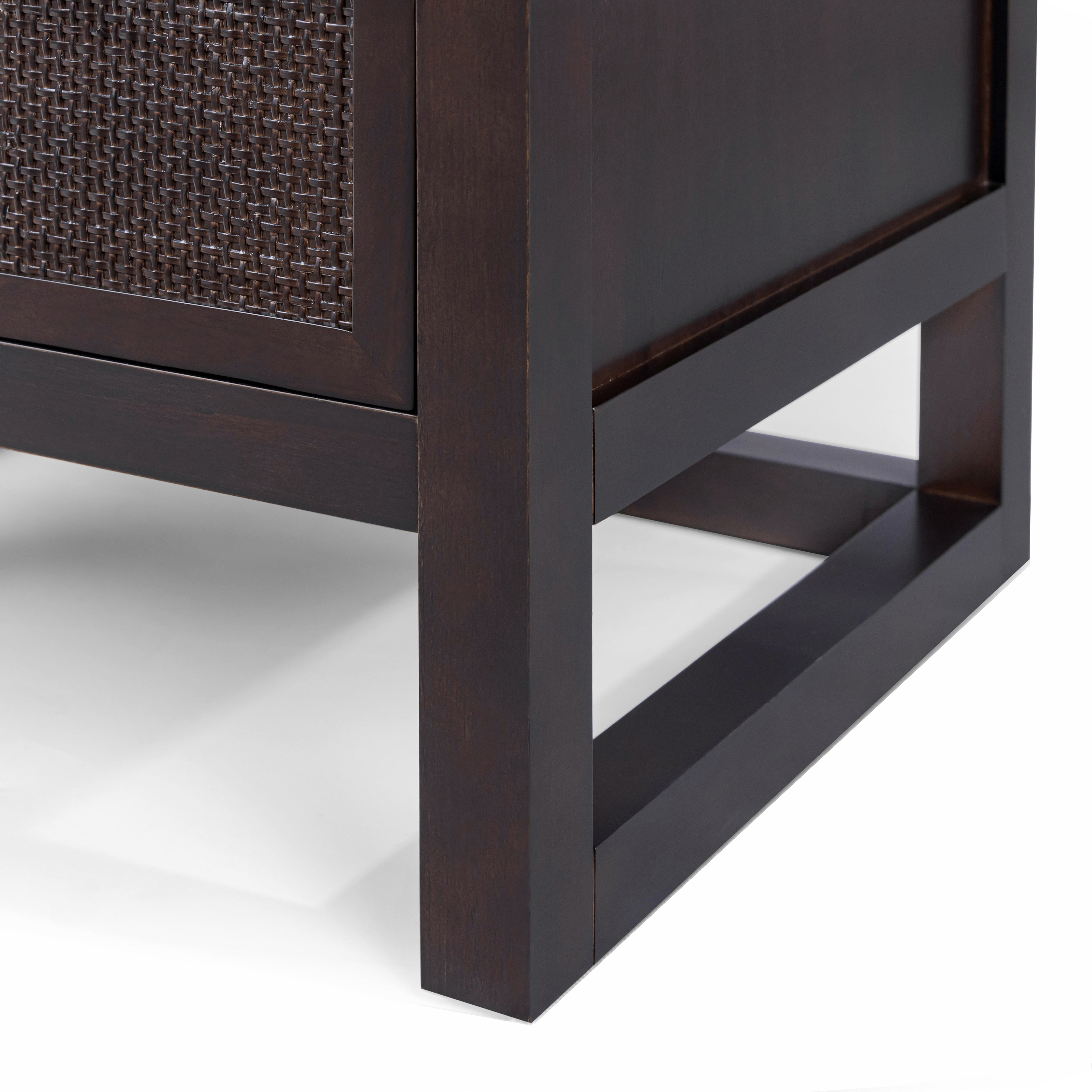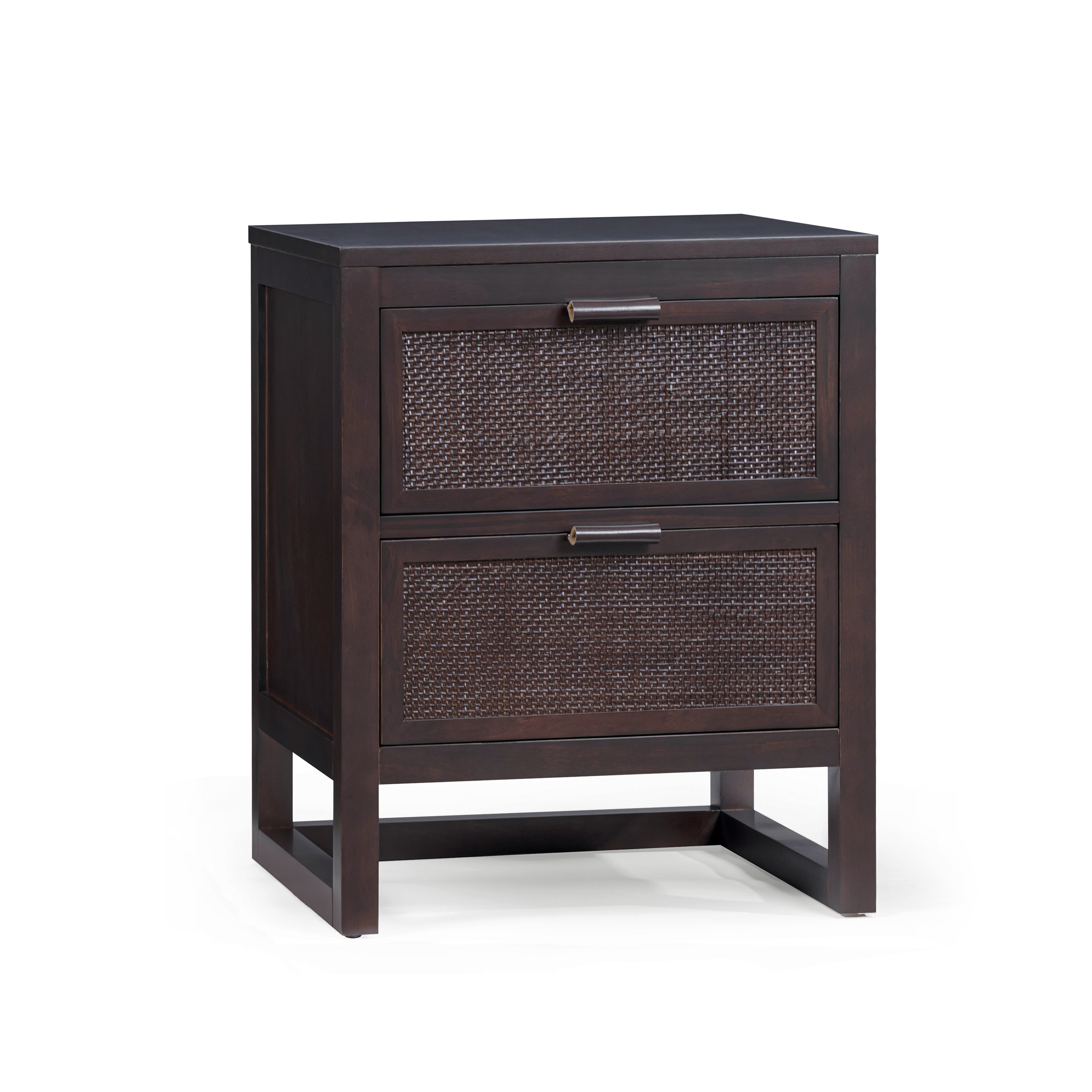 The Teamson Home Hatteras 51 cm wide Nightstand brings practical bedside storage with a balanced, modern design. Featuring two deep drawers, it offers space for books, devices and everyday essentials while keeping surfaces clear. Built from a solid pine wood frame with MDF panels finished in acacia veneer, the nightstand delivers strength and stability for daily use. Rattan inset drawer fronts add texture and visual interest, complemented by the rich mocha brown finish.