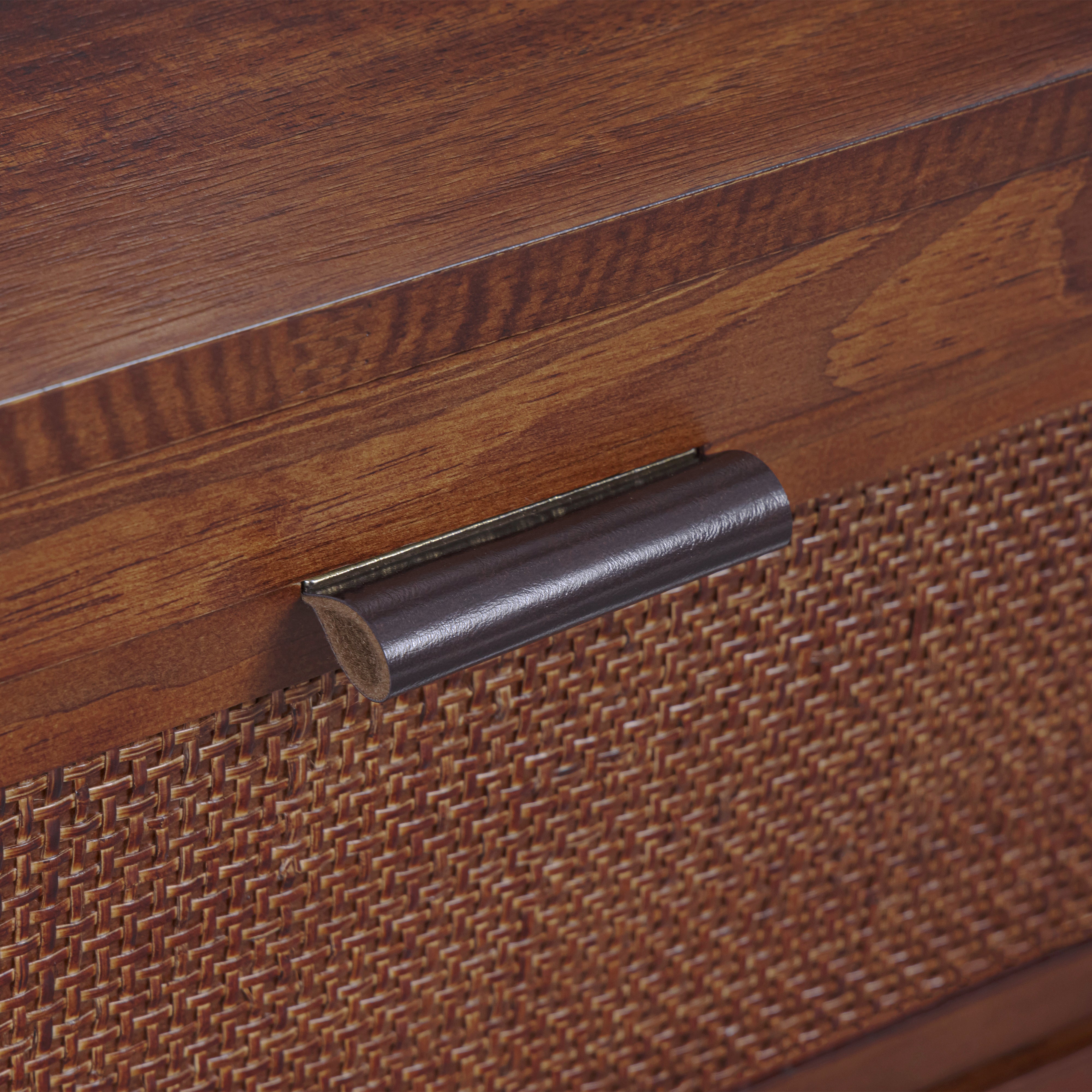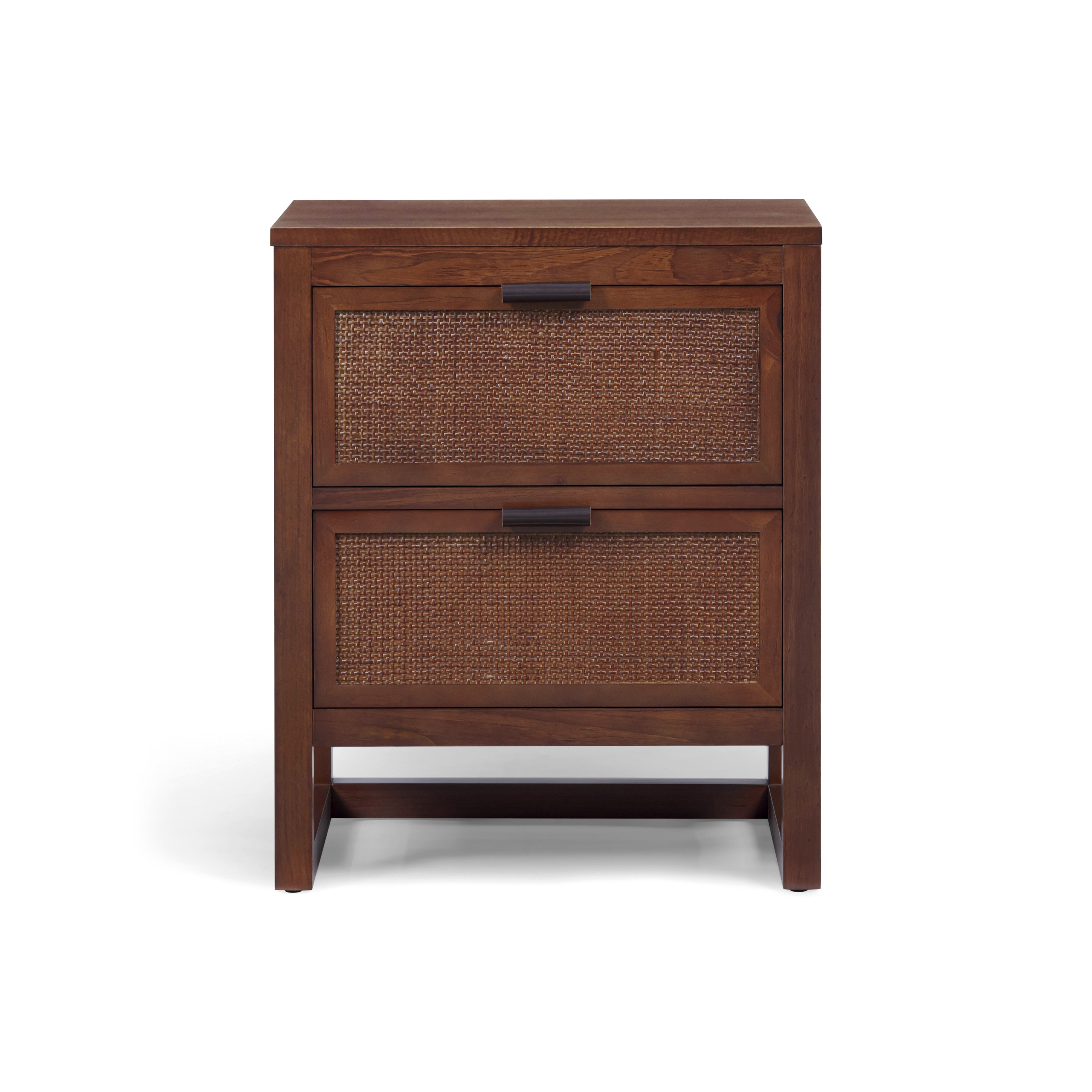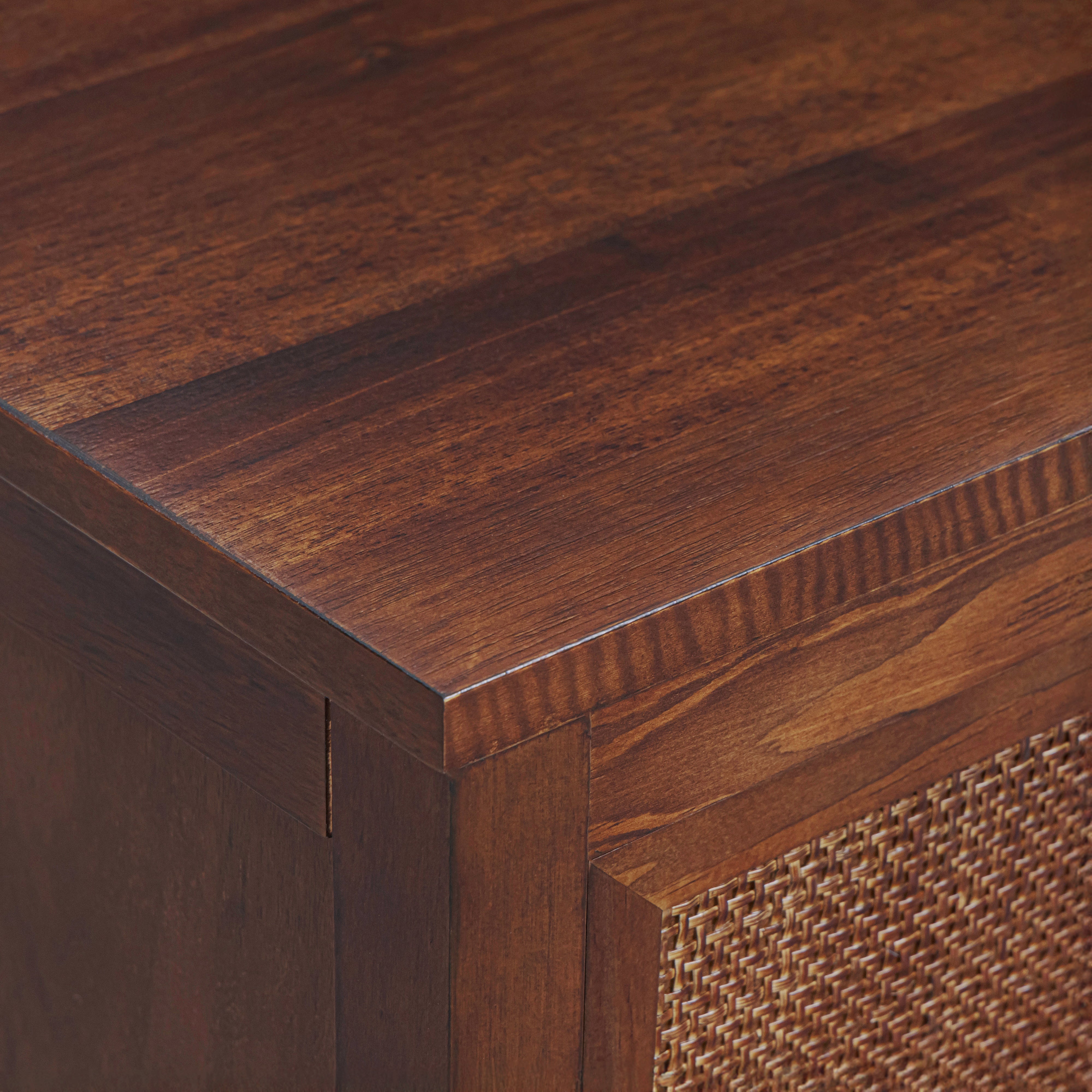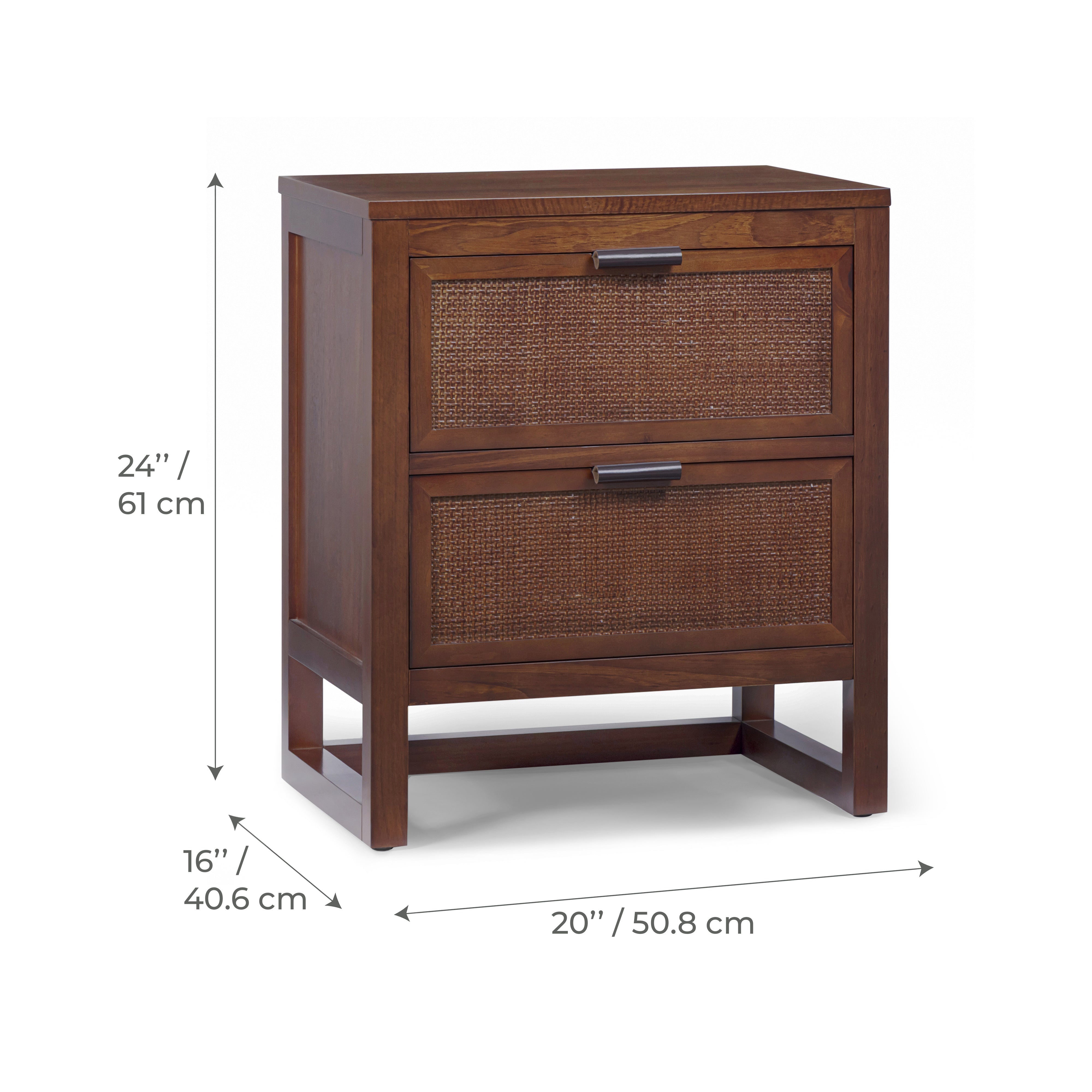 Rattan inset drawer fronts add texture and warmth, complemented by the walnut wood finish. The drawers operate smoothly for comfortable daily use, and the top surface provides room for lighting or décor. An anti-tip kit is included for added stability, and assembly is designed to be simple. Ideal for a range of bedroom styles, this nightstand balances function and timeless appeal.