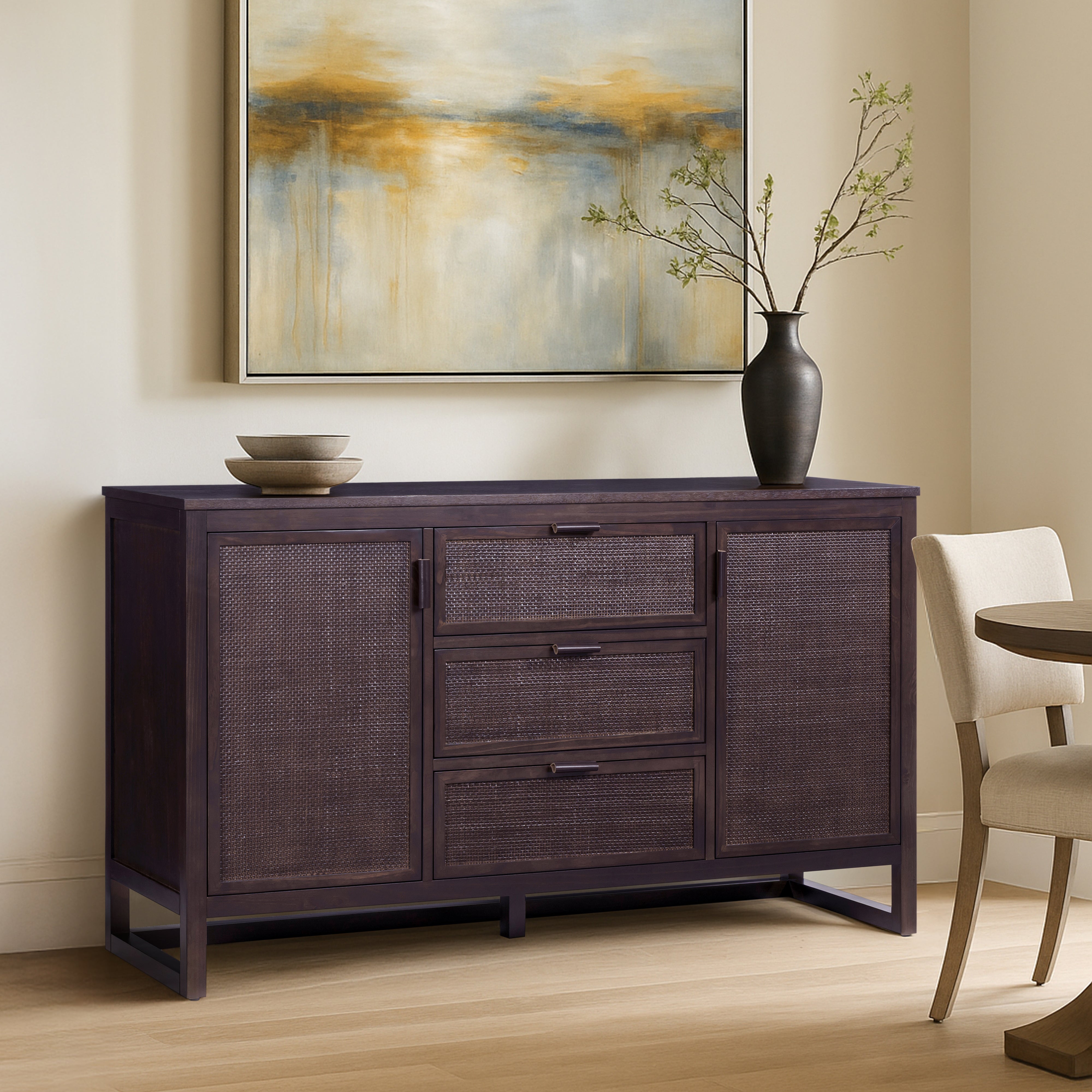 Rattan-inlay doors soften the overall look, introducing texture and natural character. Soft-close doors and stable feet support comfortable daily use. Designed for dining rooms, living areas or hallways, this sideboard keeps clutter neatly contained while enhancing the look and function of your space.