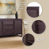 The Teamson Home Hatteras 140 cm wide Sideboard Cabinet delivers everyday storage with a warm, structured design. Three drawers keep smaller items organised, while two cupboard sections with adjustable shelves provide flexible space for larger belongings. Crafted from solid pine wood frames and MDF panels, the cabinet is finished in a rich mocha tone that adds depth to interiors.